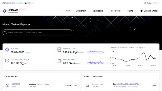 InfrastructureWeb3 infrastructure with RPC nodes, APIs, and analytics tools for Monad testnet.