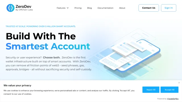 InfrastructureSmart account SDK with modular account abstraction. Build with embedded wallets and gas sponsorship on Monad.